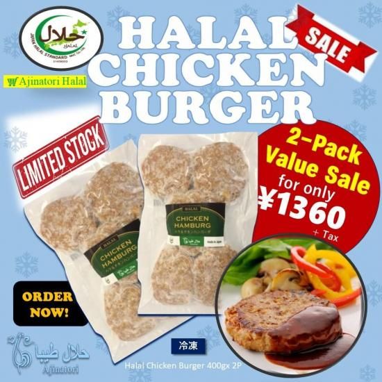 Halal chicken burger is made 100% from fresh Japan halal chicken .